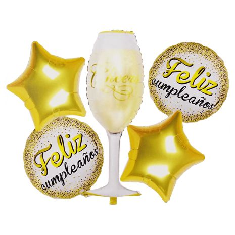 kit globos de cumpleaños metálicos copa dorada 5 piezas.