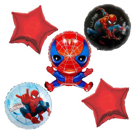 Globos de spiderman metálicos para fiestas y cumpleaños kit con 5 Piezas.