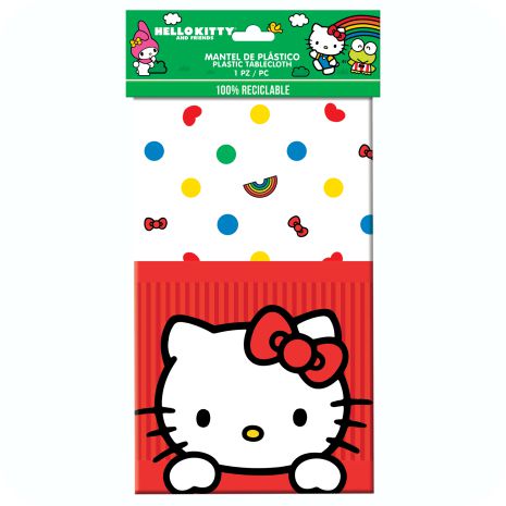 El mantel de Hello Kitty complementa a la perfección otros adornos y detalles temáticos, aportando color y energía positiva a tu decoración.